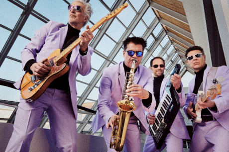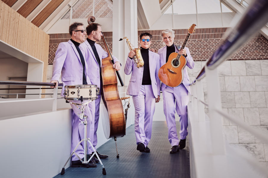 Ein klarer, eleganter Look – lavendelfarbene Anzüge kombiniert mit schwarzem Rollkragen oder schlichtem schwarzen T-Shirt – unterstreicht unsere musikalische Ausrichtung: zeitgemäß, stilvoll und
